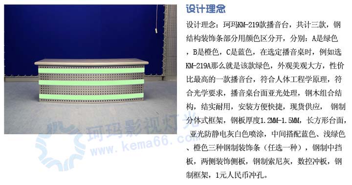 A:您好!感谢您对珂玛的支持!我们生产的播音桌款式众多,为了方便客户购买,我们对畅销款KM-202,KM-203,KM-219A/219B/219C,KM-229A/229B都是备有现货的。