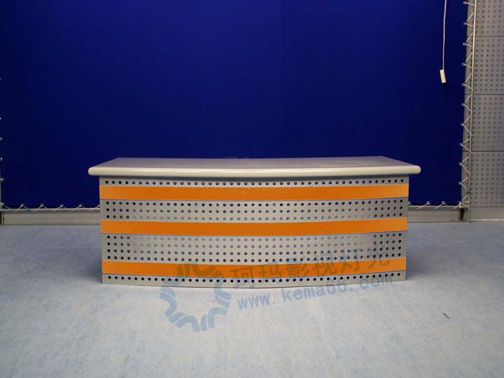 3、台面亚光处理,满足拍摄需求:主持人对播音桌和演播室的环境要求较高,桌面不能反光,会影响拍摄效果,所以桌面都是亚光的,不会反光,这需要一定的工艺和时间,为了衬托演播室的环境,播音桌在设计的时候都要求有艺术感,有美感,在桌子的造型上面需要花时间去设计。